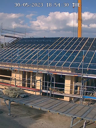Die große Fensterfront im Süden sorgt im Winter für "Sonnen"- Wärme und im Sommer durch das exakt vorgezogene Dach für angenehmes gleichmäßiges Licht.